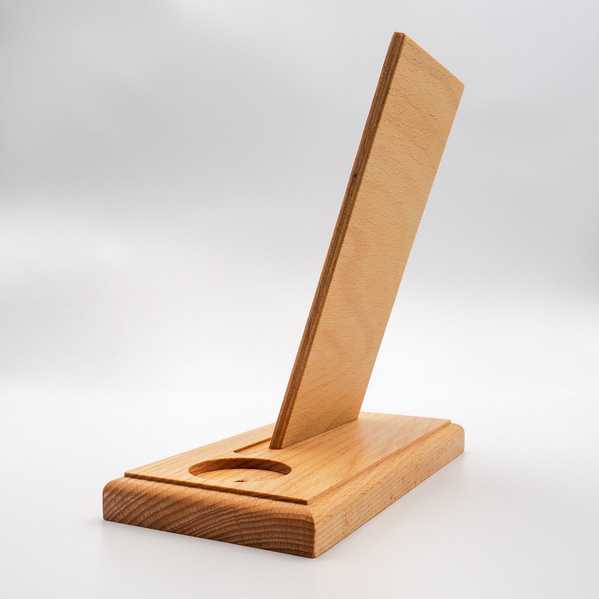 Echtholz Buche, handgefertigt, geölt mit Zitrusterpen, für Flakons bis 50 ml bzw. 40 mm Durchmesser. Maße: 180 x 90 x 180 mm (lxbxh) für Buchbreite bis 110 mm. Bitte fragen Sie auch nach anderen Formaten.