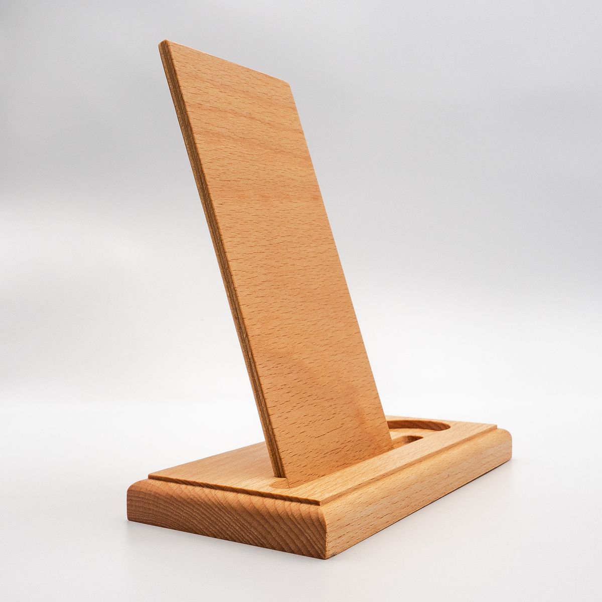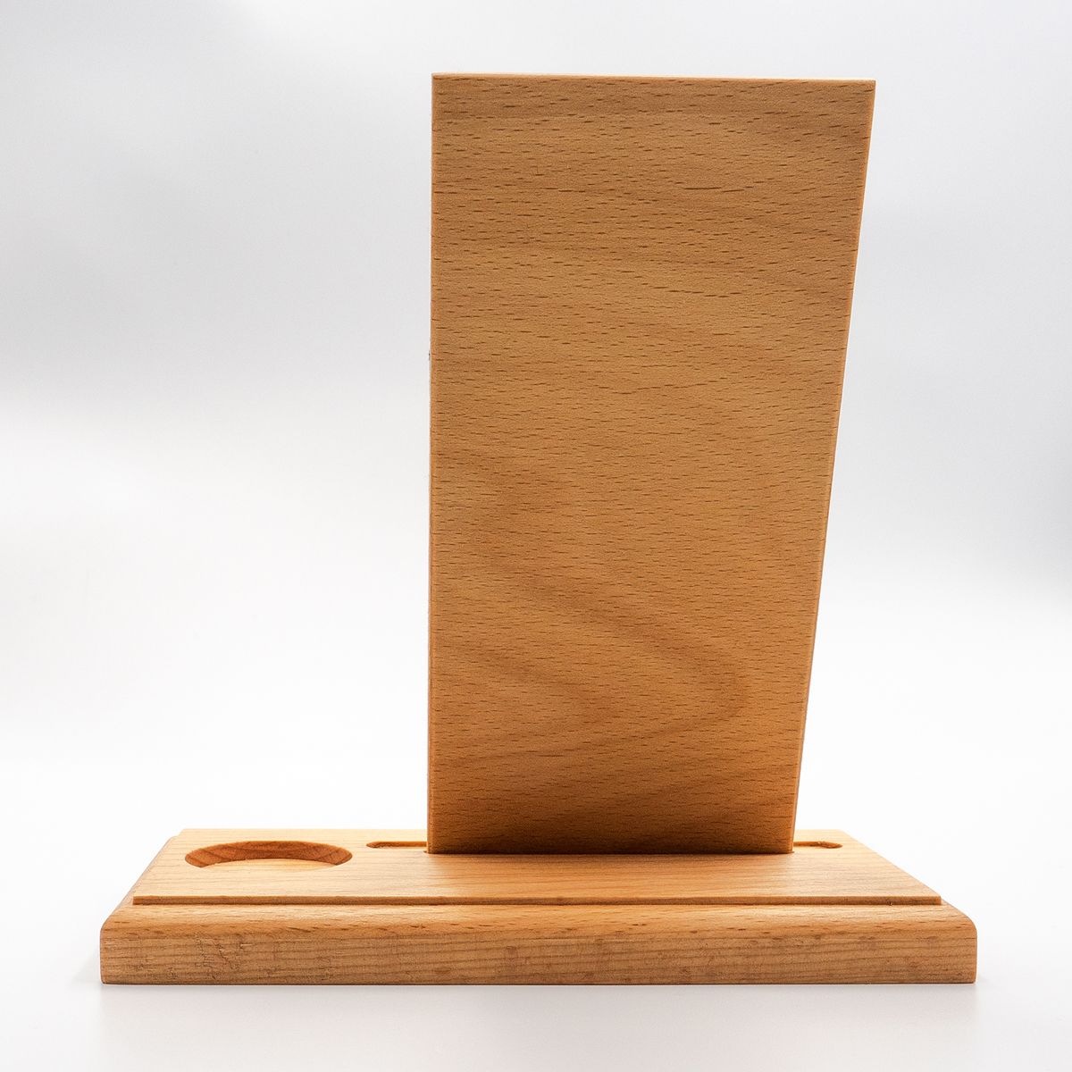 Echtholz Buche, handgefertigt, geölt mit Zitrusterpen, für Flakons bis 50 ml bzw. 40 mm Durchmesser. Maße: 180 x 90 x 180 mm (lxbxh) für Buchbreite bis 110 mm. Bitte fragen Sie auch nach anderen Formaten.